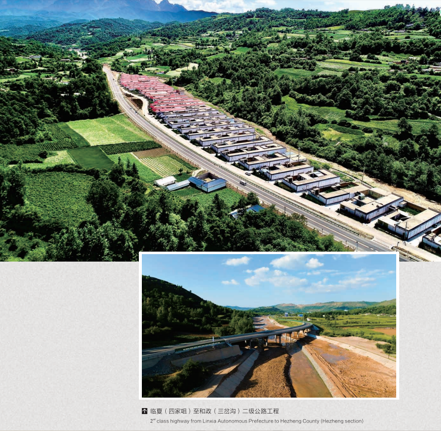 本次获奖的临夏(四家咀)至和政(三岔沟)二级公路工程(和政段)项目位于临夏州和政县境内,北接临夏县段,南接和政三岔沟旅游景区,线路全长16.4km,主线多次跨越牛津河,设计桥梁9座,采用二级公路技术标准建设,路基宽12米,设计时速60公里,施行“建养一体化”模式运营。在建设过程中,项目管理团队秉承“视质量如生命 以质量铸品牌”的理念,始终将用户满意度置于重要位置,高标准、高质量推进项目建设,先后获得了“甘肃省实施用户满意工程”“甘肃省建设工程文明工地”“甘肃建投2021年度绿色施工与智慧建造示范工程”等荣誉。该项目交付使用,有力改善了地区交通运输环境、加快了区域资源的开发利用,在助力乡村振兴、交旅融合发展等方面发挥着重要作用。