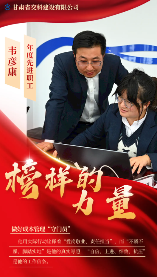 韦彦康,现任甘肃建投交科公司二公司经营预算科科长。工作以来,他勇挑重担,亲力亲为,全面协调完成分公司及项目部经营预算工作,与团队成员共同做好公司成本管理的“守门员”。