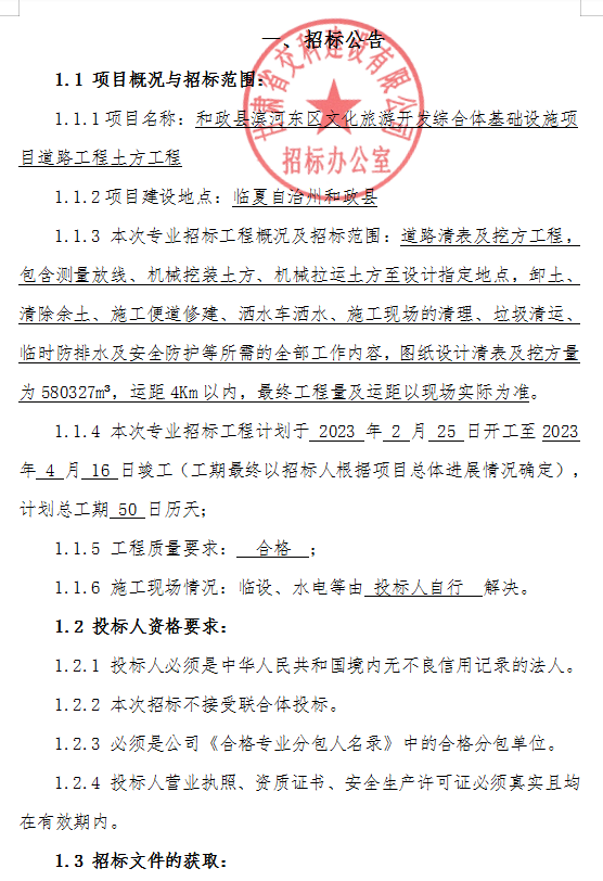 <h3>和政县滨河东区文化旅游开发综合体基础设施项目道路工程土方工程招标</h3>