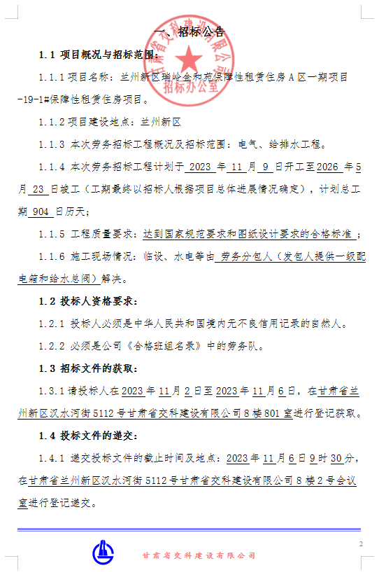 <h3>兰州新区瑞岭金和苑保障性租赁住房A区一期项目-19-1#保障性租赁住房-招标公告</h3>