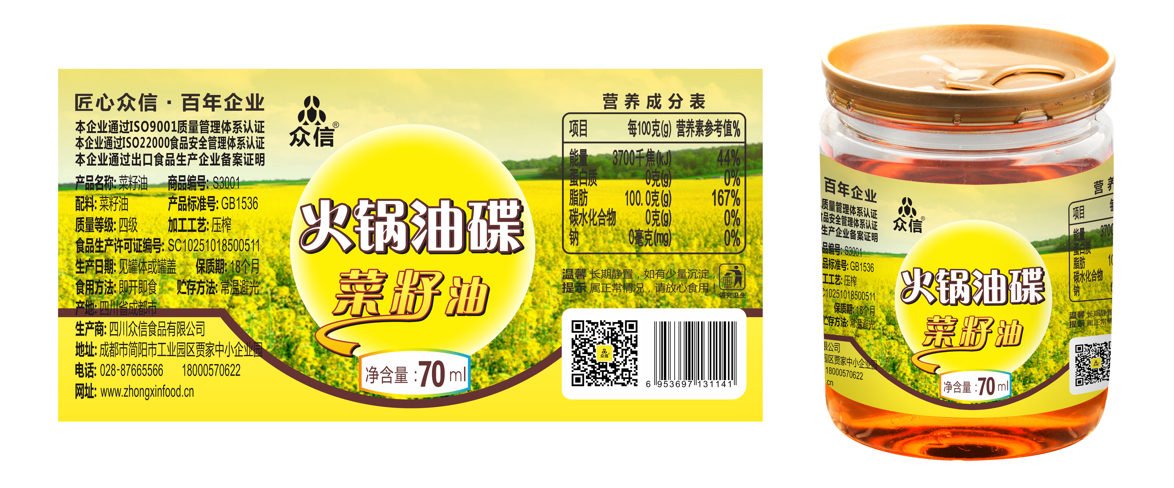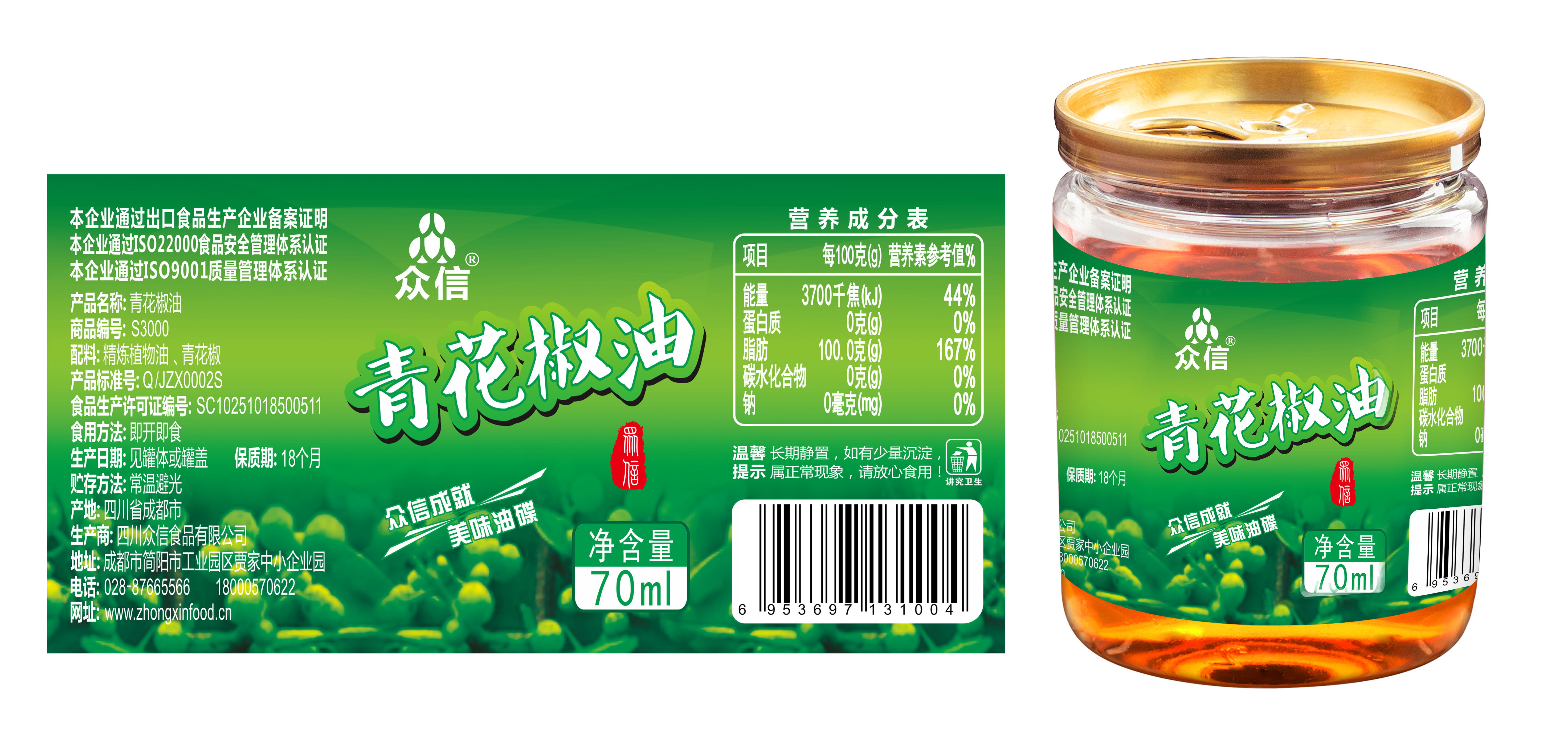 【品名】:S3000众信70ml青花椒油火锅油碟